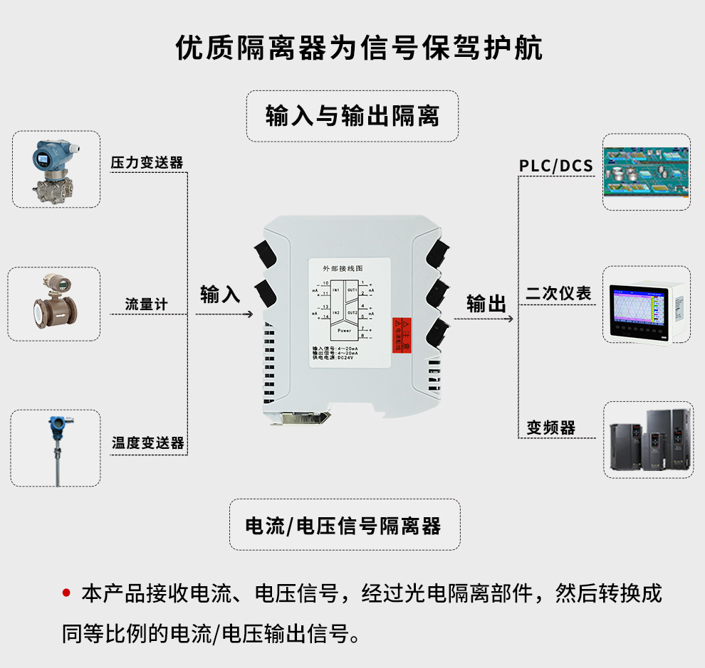 • OHR-M31系列智能隔離器將直流電壓或電流信號經過隔離傳送,轉換成所需的信號給其它儀表。可以與單元組合儀表及DCS、PLC等系統配套使用,給予現場儀表信號隔離、信號轉換、信號分配、信號處理等,從而提高工業生產過程自動控制系統的抗干擾能力,保證系統的穩定性和可靠性。